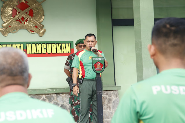 prajurit dan PNS Pusdikif di Lapangan Apel Pusdikif, Kamis (20/3/2025).